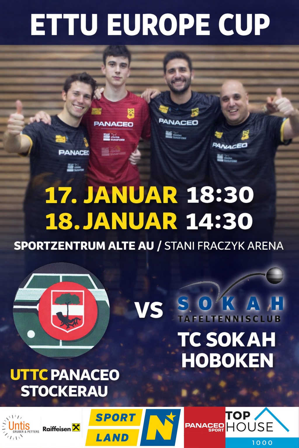 17.1. (18:30) und 18.1. (14:30) jeweils in Stockerau: Panaceo Stockerau (Nr. 22) – Hoboken (Bel/21)