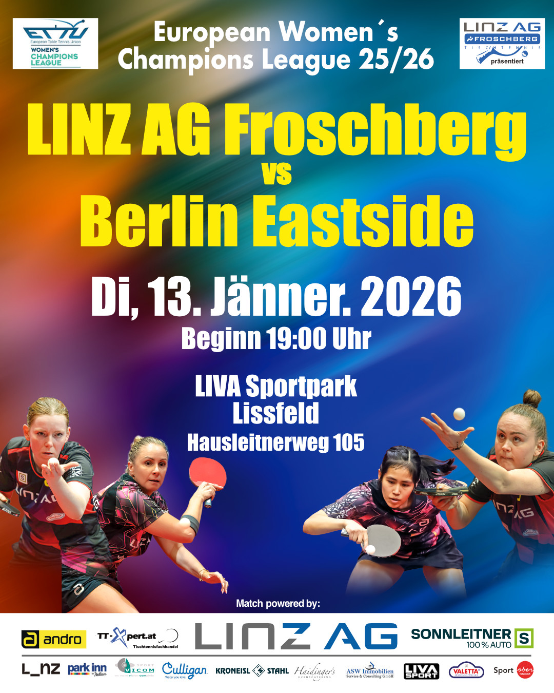 13.1. Champions League Linz AG Froschberg – Berlin (19 Uhr)