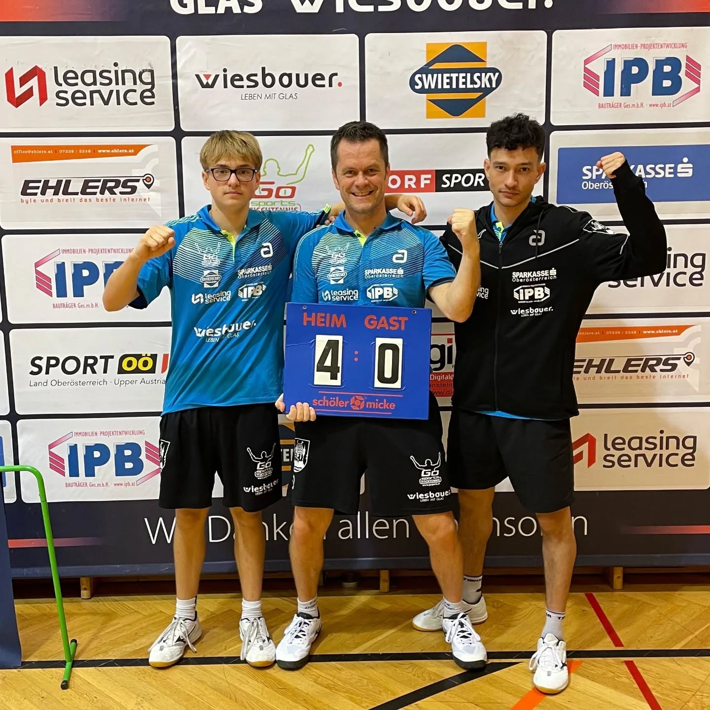 Erster Verfolger des Spitzenreiters ist Wels II: Der Meister hält nach dem 4:0 bei Salzburg II bei fünf Siegen aus fünf Matches. Bitter dabei: ÖTTV-Talent Petr Hodina fällt verletzt aus, musste durch den Taiwanesen Chia-Hao Chang ersetzt werden. Der Neuzugang hält bei 4:0 Erfolgen, Gabor Böhm liegt im Liga-Ranking mit 5:0 Erfolgen auf Platz zwei.
