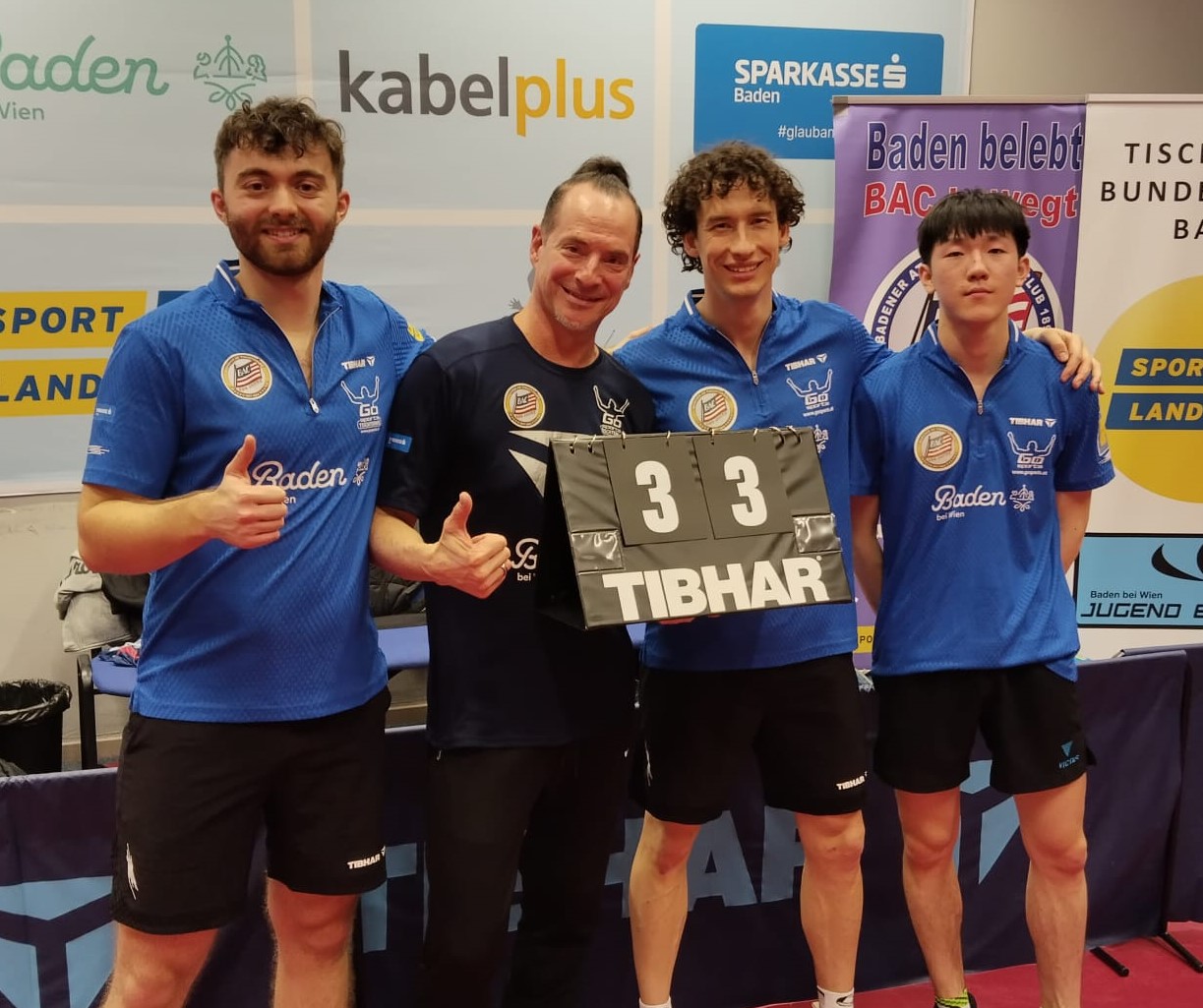 Mit einer 2:0-Führung startete Baden ins Bundesliga-Derby gegen SolexConsult TTC Wiener Neustadt. Eric Glod besiegte zunächst Navid Shams mit 3:1 und Chia-Chuan Chuang legte mit einem überraschenden 3:2 gegen Andrej Istrate nach. Doch dann drehte der Winterkönig das Match: Piotr Cyrnek scorte im Einzel und an der Seite von Peter Hribar im Doppel, Istrate brachte Wr. Neustadt mit einem 3:0 über Eric Glod mit 3:2 in Führung. Zum Abschluss fixierte Chia-Chuan Chuang durch ein 3:0 über Peter Hribar das 3:3-Remis für die Casino-Städter, die damit aber das Halbfinale verpassen. „Ein starkes Remis, aber leider mussten wir unseren indischen Topspieler Suravajjula, der wegen des Iran-Krieges nicht fliegen konnte, vorgeben“, ärgerte sich Baden-Obmann Andreas Meixner.